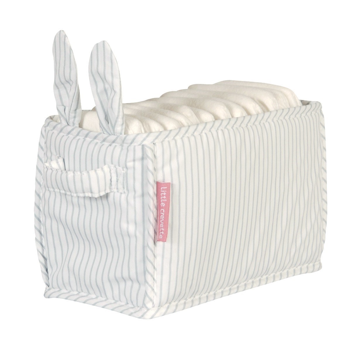 Un bac de rangement à couches original avec ses oreilles de lapin. Petites poignées sur les côtés.