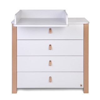 La commode YappyÉtude combine élégance et fonctionnalité avec un design épuré et des matériaux de haute qualité. Elle est équipée de quatre tiroirs spacieux à ouverture complète, parfaits pour organiser les affaires de bébé. Un plan à langer amovible est inclus pour plus de praticité.