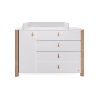 Le plan à langer peut être fixé à gauche ou à droite de la commode. Une fois que vos n'en avez plus l'utilité, vous pouvez enlever le plan à langer et vous n'aurez pas de trous visibles sur la plaque supérieure. Le produit évolue et se positionne par la suite comme une véritable commode.