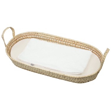 Transformez les moments de change en un instant de douceur avec notre set complet panier à langer , alliant artisanat naturel et confort textile . Ce set comprend un panier à langer tressé à la main en fibres de palmier, un matelas ovale fabriqué en France , un drap-housse en gaze de coton de la collection Jeanne et un tapis de change imperméable en bambou .