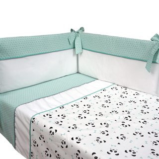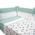 N'attendez plus un instant pour commander votre parure de lit trois pièces pour bébé ! La collection Panda est disponible en rose et vert menthol (parure, tour de lit et gigoteuse assortie).
