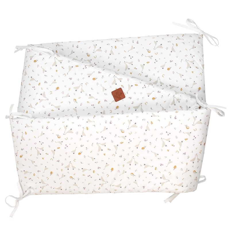 Le tour de lit de la Collection Sidonia est parfait pour offrir à bébé un sommeil en toute sécurité et s'adapte aux lits bébé de 60x120 ou 70x140 cm. L'adorable tour de lit à l' imprimé minimaliste , pour de belles aventures durant les sommeils de votre enfant. La collection Sidonia, une collection champêtre parsemée de fleurs et d'adorables petites oies , aux teintes chaleureuses, pour apporter douceur et réconfort dans le quotidien de bébé. La collection Sidonia est idéale pour décorer la chambre de votre enfant, à l'esprit minimaliste . En dehors de la fonction décorative, le tour de lit remplit le rôle pratique parce qu'il couvre les barreaux du lit en protégeant votre bébé et en lui fournissant un sommeil confortable et rassurant . Il protège également contre le froid, le lit est exceptionnellement confortable et agréable. Egalement, le tour de lit est déhoussable pour lui permettre un lavage en toute simplicité et plus rapide . Cette fonction déhoussable vous permet d'autre part de changer de tour de lit selon vos envies, en choisissant d'autres housses disponibles à cet effet. Personnalisable avec le de bébé ou avec un petit mot d'amour de votre choix.Pour en savoir un peu plus sur le tour de lit Sidonia en coton, 100% made in France :