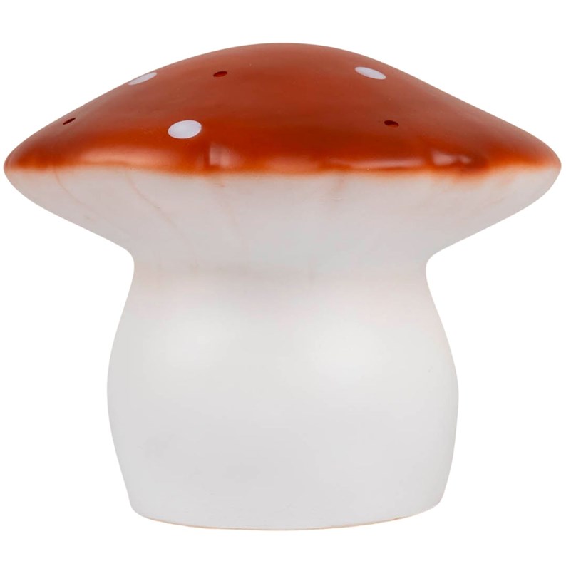 Peinte à la main dans un rouge brique profond, cette lampe diffuse une lumière douce et apaisante qui rassure les enfants et crée une atmosphère chaleureuse. Entièrement artisanale, chaque pièce est unique et sublime la décoration d’intérieur par sa forme de champignon emblématique.
