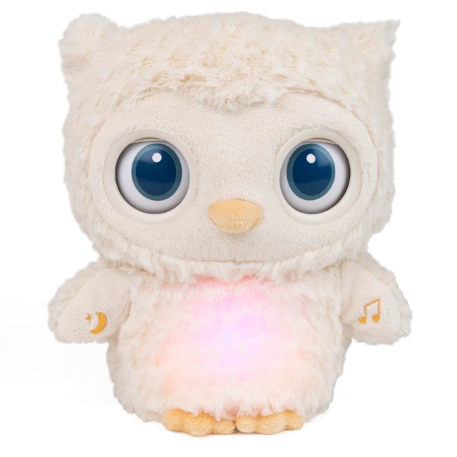 - On appuie sur la note de musique brodée sur son bouton droit, et les yeux de la chouette se ferment lentement pour encourager bébé à faire pareil.