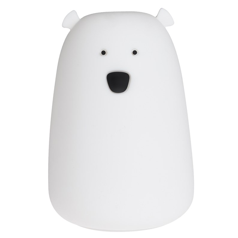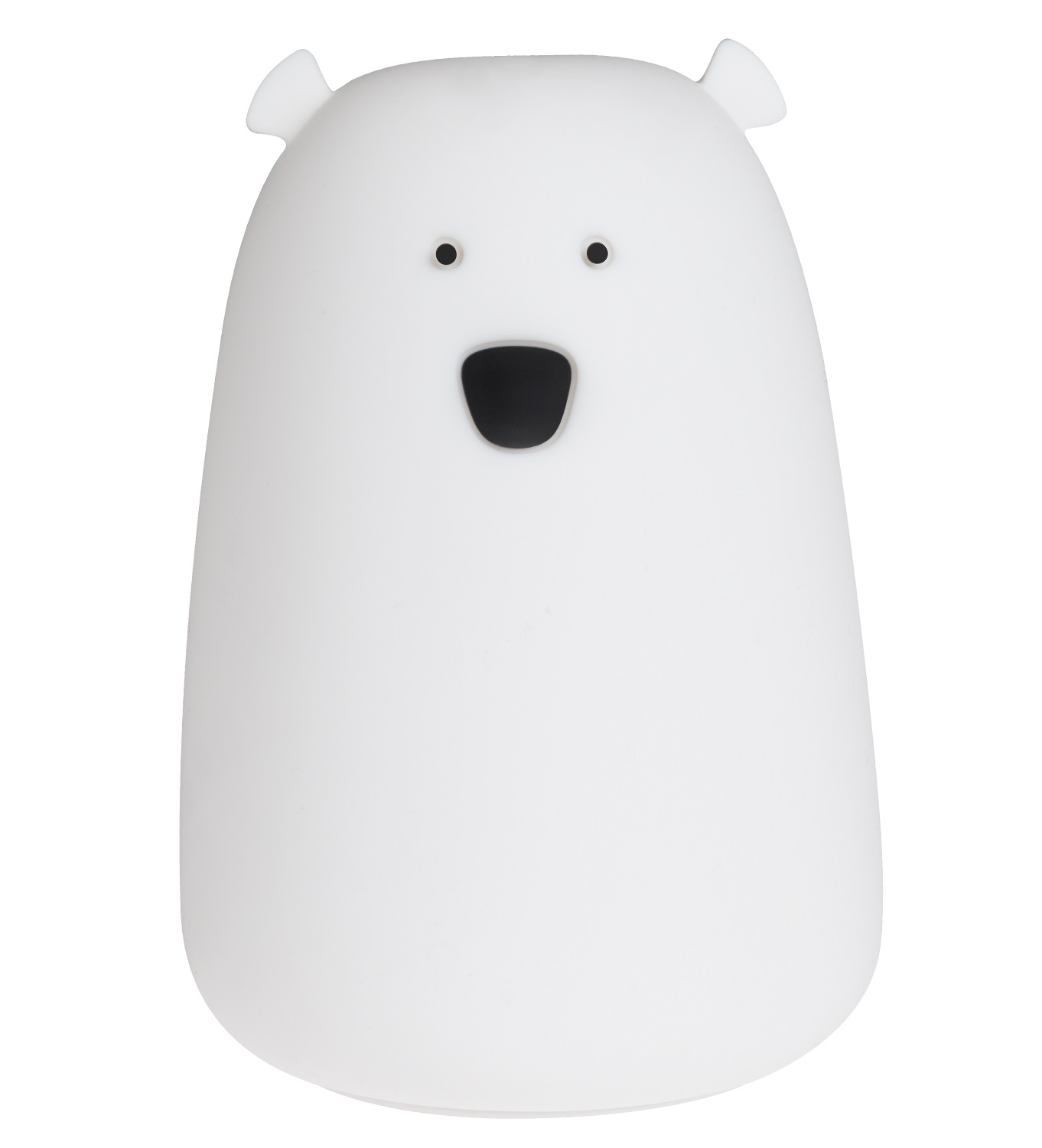 Voici une veilleuse qui permettra aux enfants de se sentir rassurés au moment du coucher et de s'endormir sereinement. Veilleuse en silicone douce et souple au toucher en forme d'ours polaire. Tactile, elle plaira autant aux enfants qu'aux parents. 3 effets lumineux possibles : douce lumière blanche, lumière aux 7 couleurs changeantes ou lumière de couleur fixe.