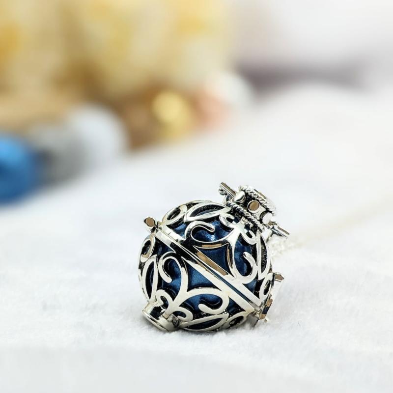 Bola de grossesse cage en plaqué argent – Bille sonore bleue