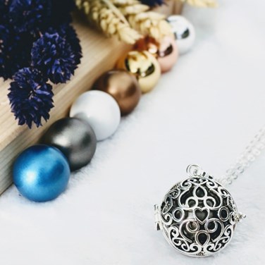 Le pendentif est suspendu à une chaîne en plaqué argent de 114 cm , idéale pour que le bola repose naturellement sur le ventre. Il peut se porter au quotidien, tel un accessoire raffiné chargé d’émotion.
