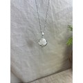 Chaîne en acier inoxydable de 105 à 110 cm, bola de grossesse en plaqué argent 925, garanti sans nickel, sans plomb et sans cadmium. Le bola est accompagné d'une fleur de lotus en nacre et deux petites perles blanches en quartz.