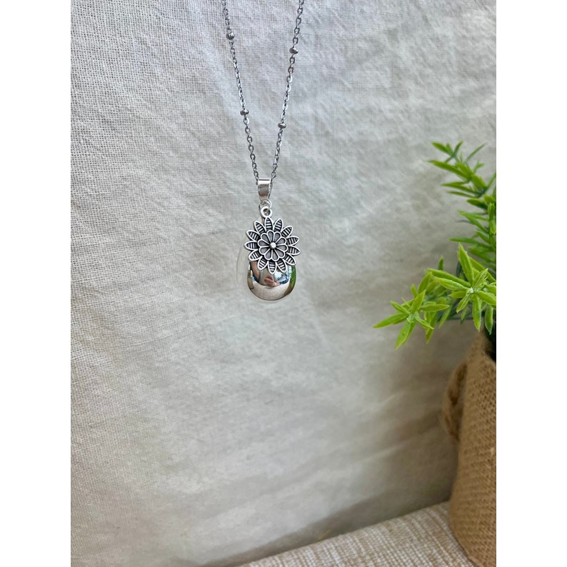 Chaîne en acier inoxydable de 105 à 110 cm. Bola de grossesse en plaqué argent 925 et breloque en métal garanti sans nickel.