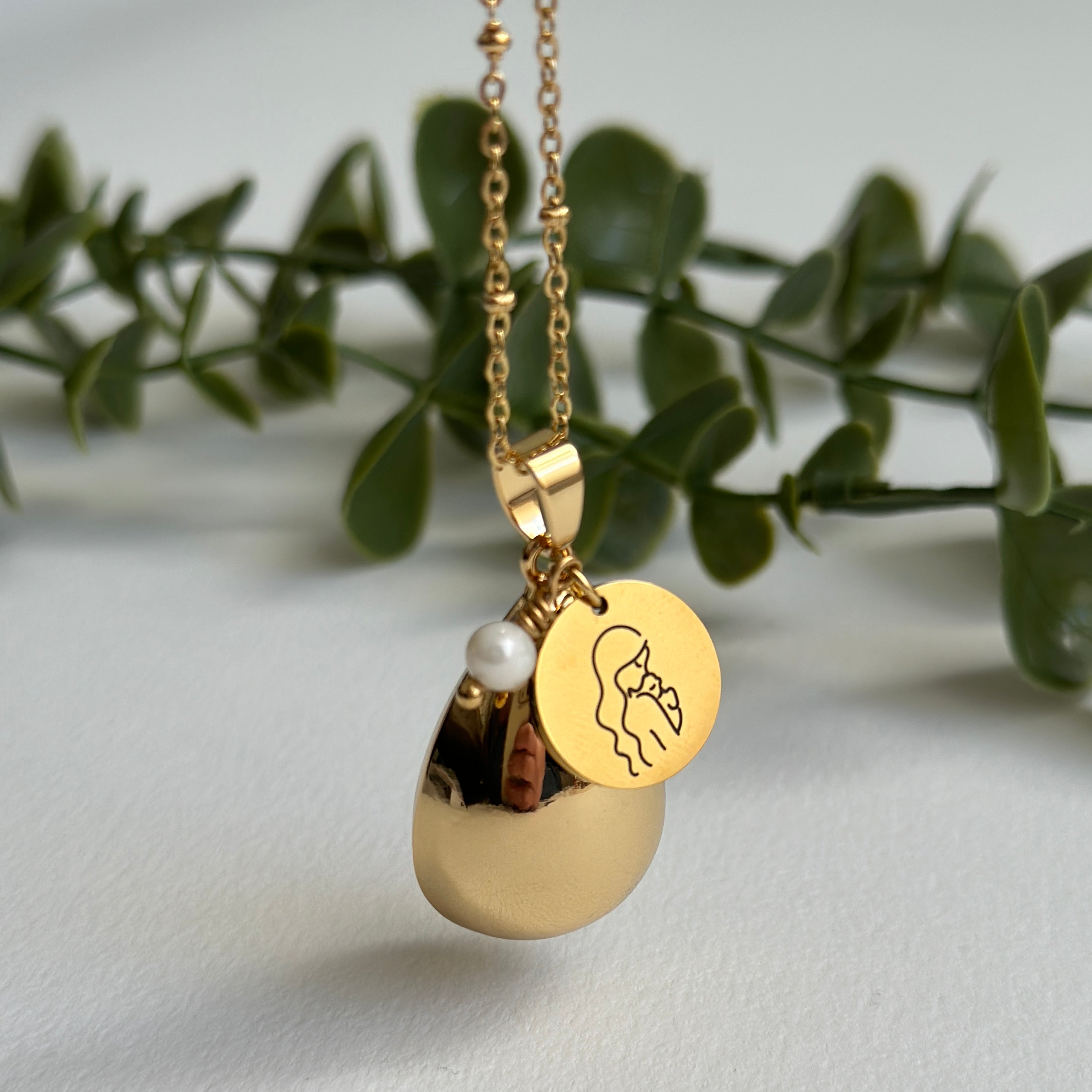 Une fois né, bébé aura cette sensation de sécurité et d’apaisement en entendant à nouveau ce son. Les premiers mois, le pendentif pourra être suspendu au-dessus du berceau de bébé, puis inséré et cousu de manière sécurisé dans son doudou.