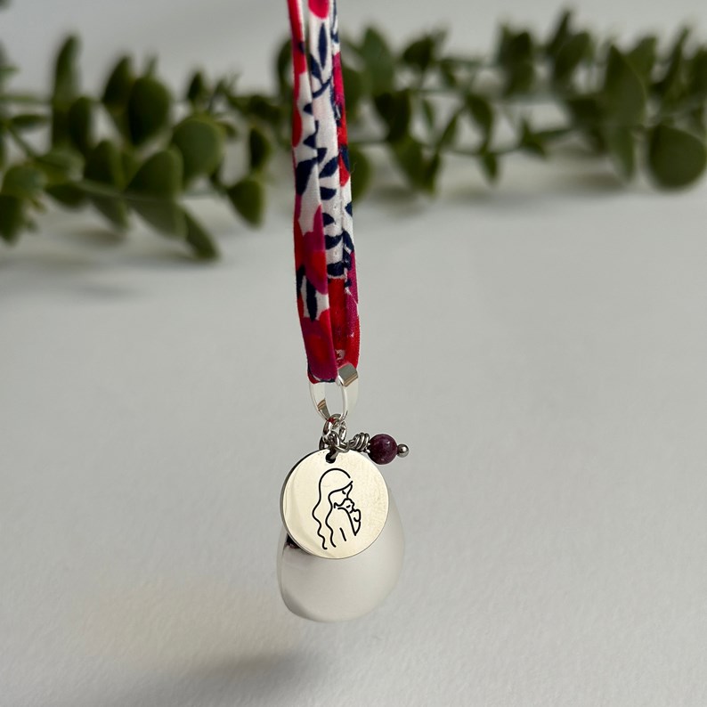 Une fois né, bébé aura cette sensation de sécurité et d’apaisement en entendant à nouveau ce son. Les premiers mois, le pendentif pourra être suspendu au-dessus du berceau de bébé, puis inséré et cousu de manière sécurisé dans son doudou.