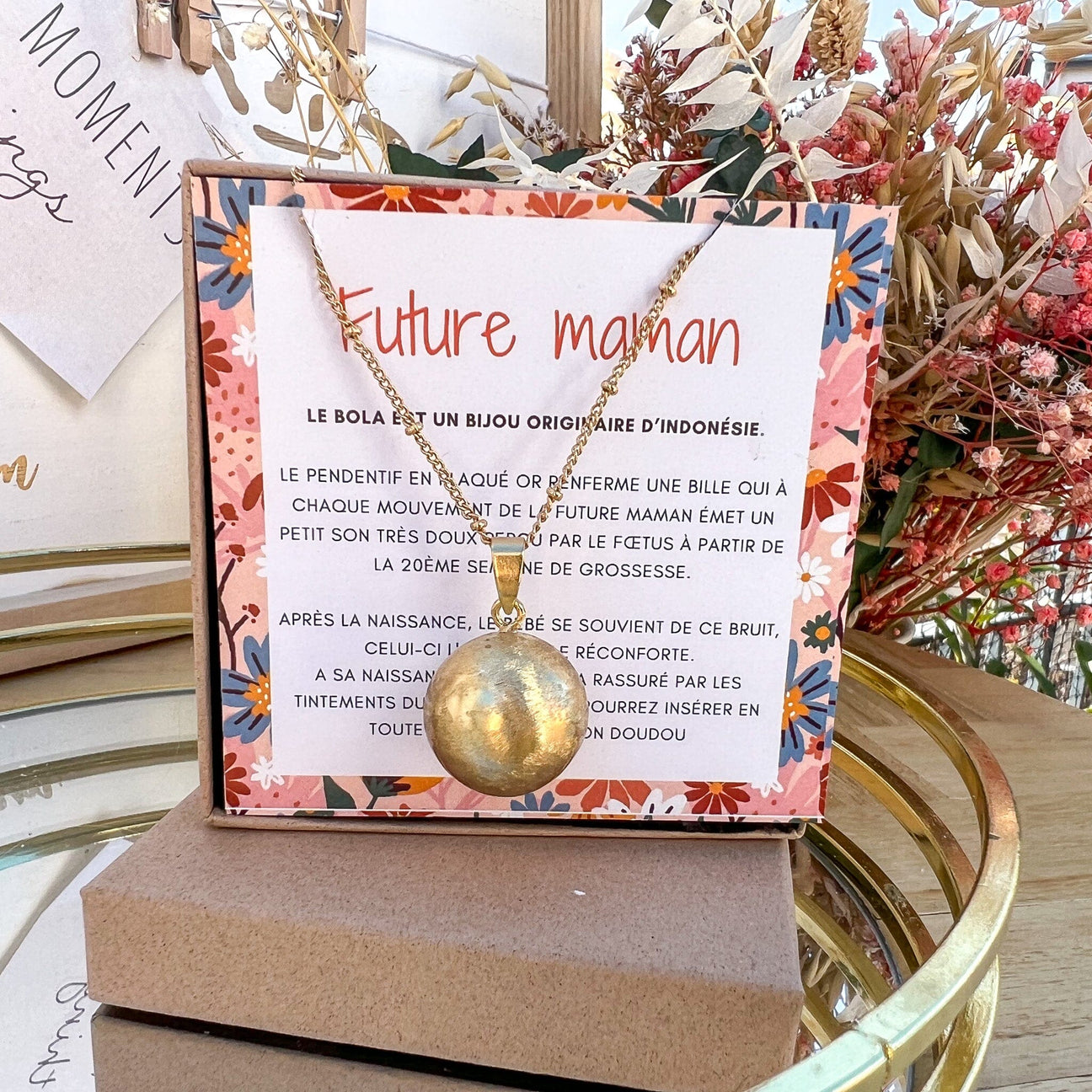 Offrez-vous ou à une future maman que vous chérissez ce magnifique Bola de Grossesse en Plaqué Or 18 Carats avec Chaîne Satellite de 110 cm pour une expérience de maternité empreinte d'élégance, de douceur et d'harmonie.