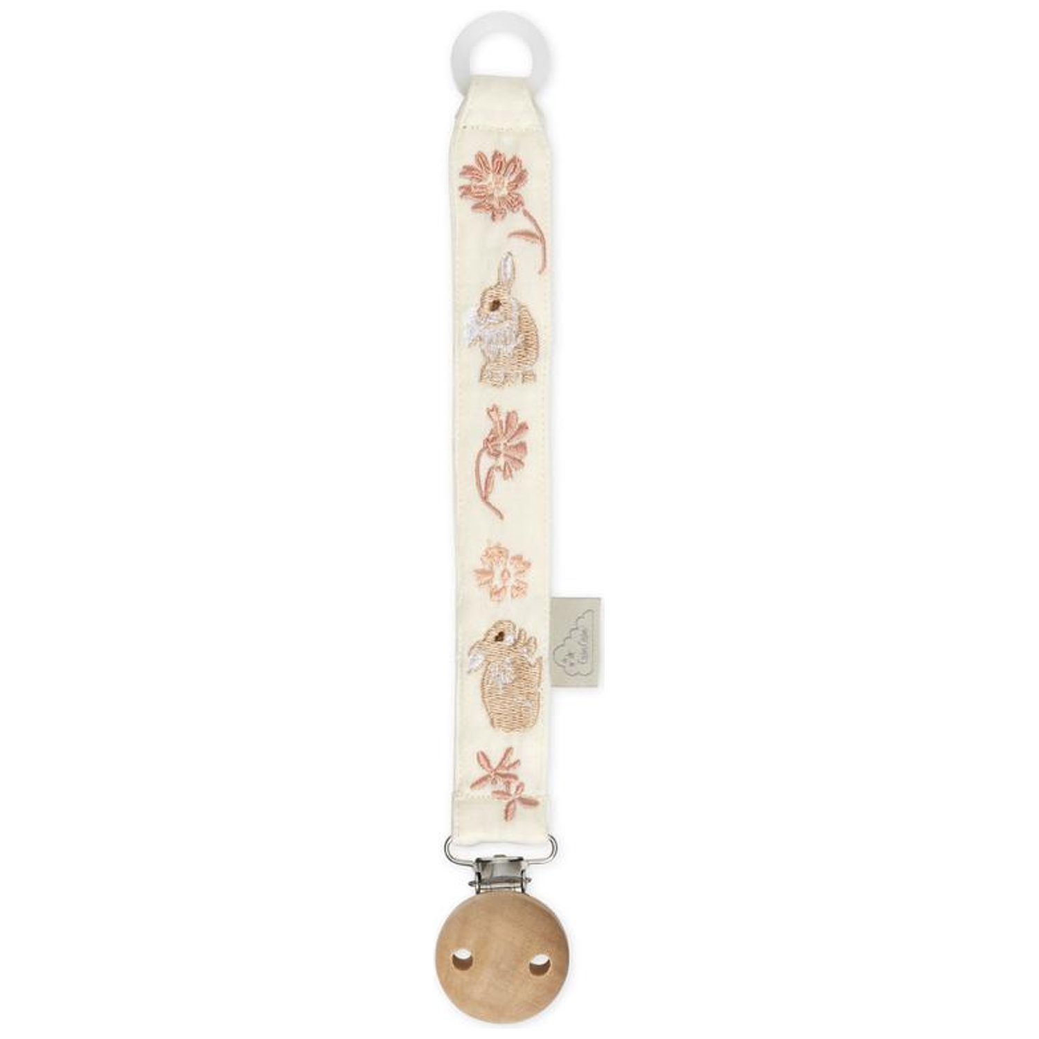 - Fabriqué en coton bio certifié GOTS, ce charmant porte-sucette est orné de délicates broderies représentant de jolis lapins.