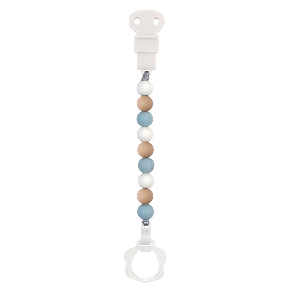 Cette attache sucette s'attache facilement à tout les modèles de tétines grâce à son clip ajustable. Conçue pour vous simplifier le quotidien, elle se clipse sur les habits de bébé sans les abîmer. Ainsi la tétine est toujours à portée de main de nos tout-petits, elle ne tombe pas et ne se perd pas. Et Bébé pourra aussi s'amuser en touchant les jolies petites perles rondes en silicone.