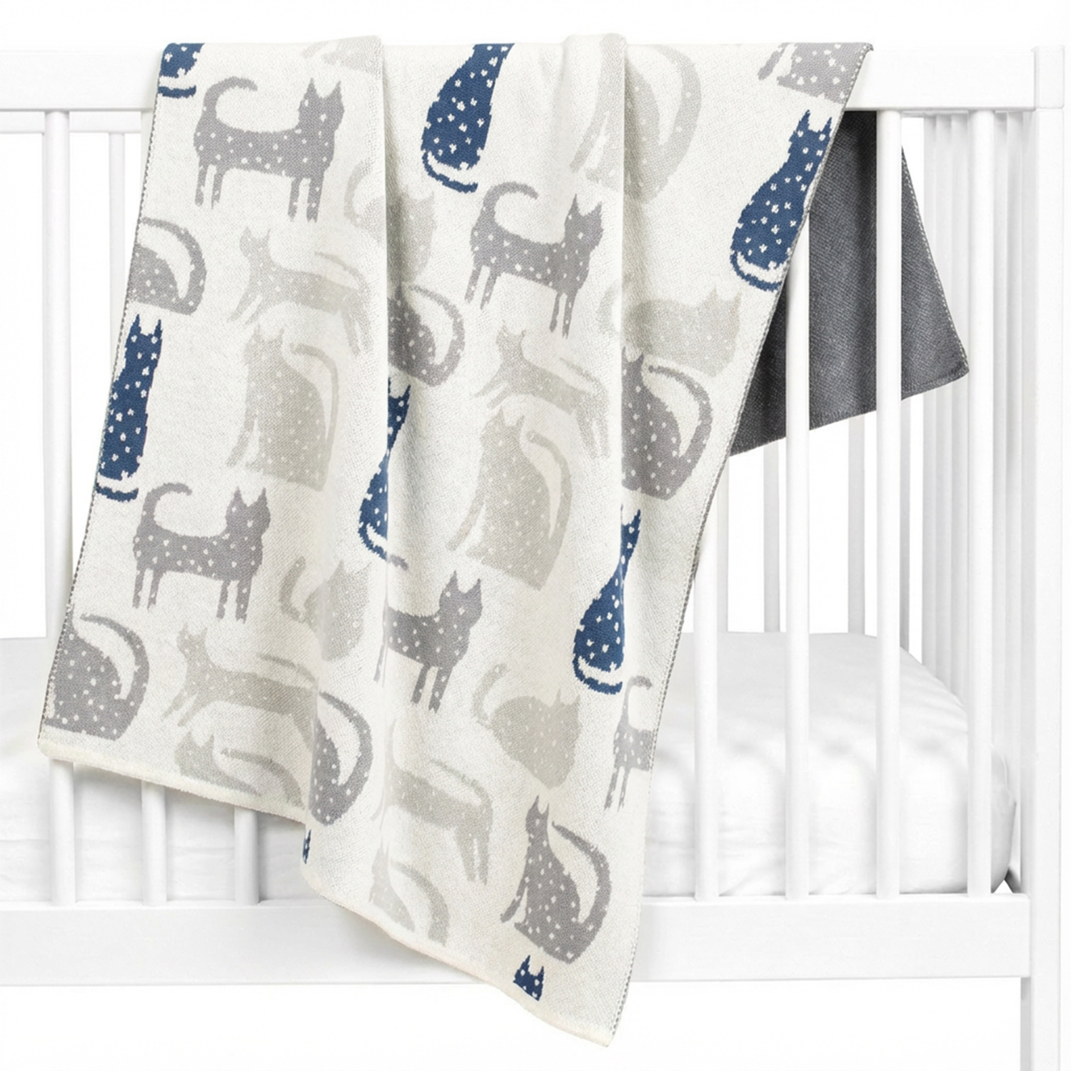 Avec ses charmants motifs de chats gris et bleu marine sur un fond écru, cette couverture est à la fois douce et attrayante pour petits et grands. Son design mixte convient aussi bien aux filles qu'aux garçons , et s'intègre parfaitement dans toutes les chambres d'enfants. Facile à transporter et légère, elle sera parfaite pour accompagner les moments de câlins ou lors de vos sorties avec bébé.