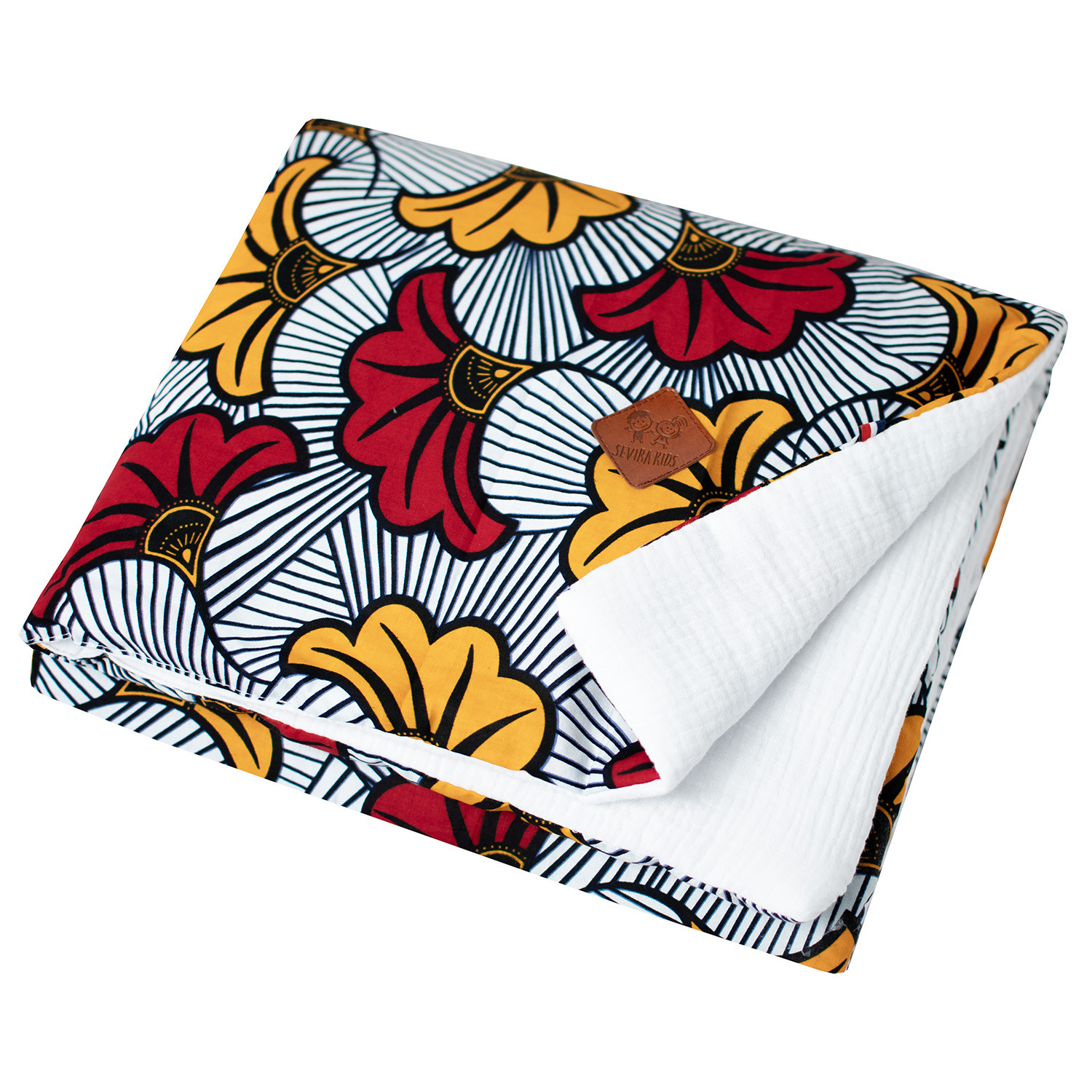 Couverture plaid réversible en gaze de coton et Wax – Confort, style et fabrication française