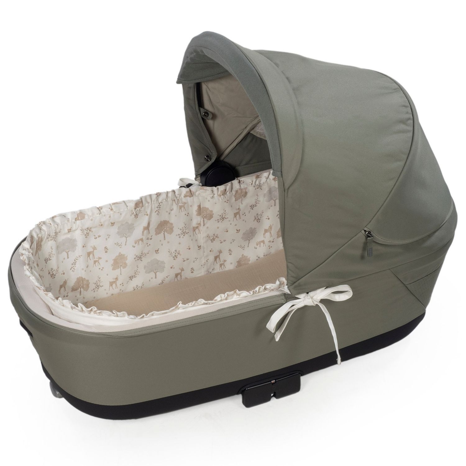 - Son design réglable avec des liens assure un ajustement parfait à la nacelle, offrant une finition enveloppante et sécurisée avec un charmant motif imprimé de cerfs et d'arbres dans des tons neutres.