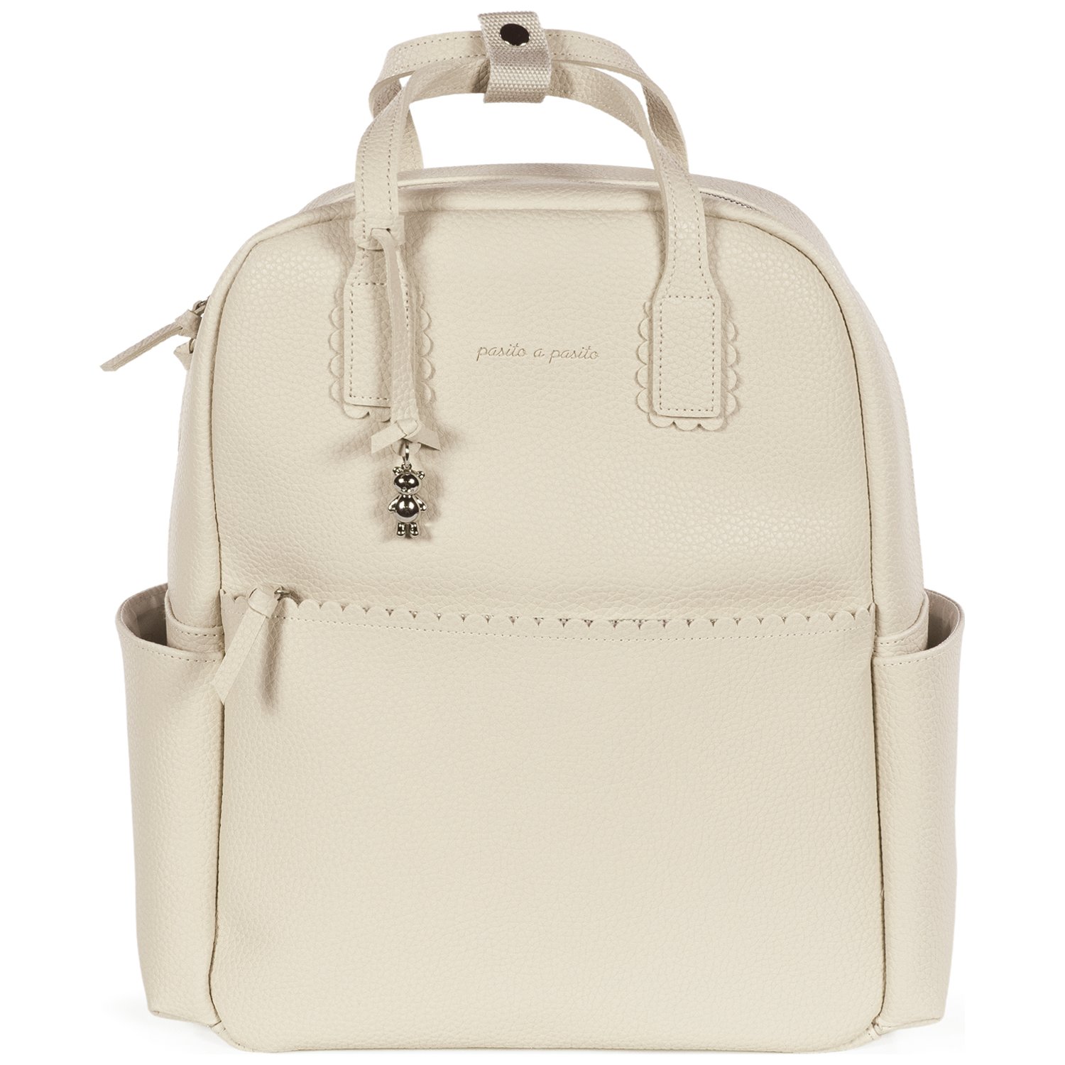 - À l'extérieur, une poche frontale à fermeture éclair vous permet d'avoir toujours à portée de main vos objets essentiels, tels que votre téléphone portable, vos clés ou tout ce dont vous avez besoin pour sortir avec votre bébé, sans avoir à utiliser votre sac.