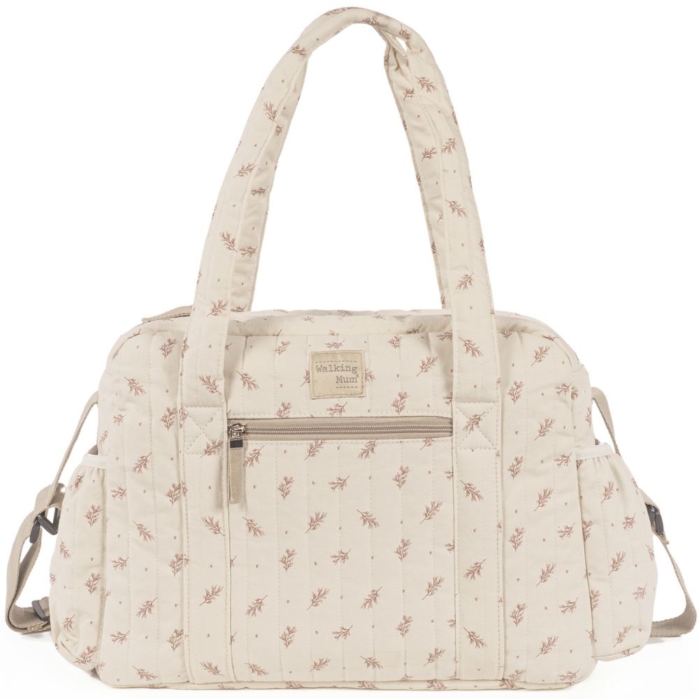 - Sac à langer Rose Mimosa à imprimé fleuri pour poussette comprenant un matelas à langer pour bébé.