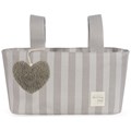 Conçu pour accompagner les parents modernes, ce sac pratique et raffiné est décoré d’un adorable cœur en tissu peluche qui séduira petits et grands. Avec ses rayures taupe et blanches, il apporte une touche chic et chaleureuse à vos accessoires de puériculture.