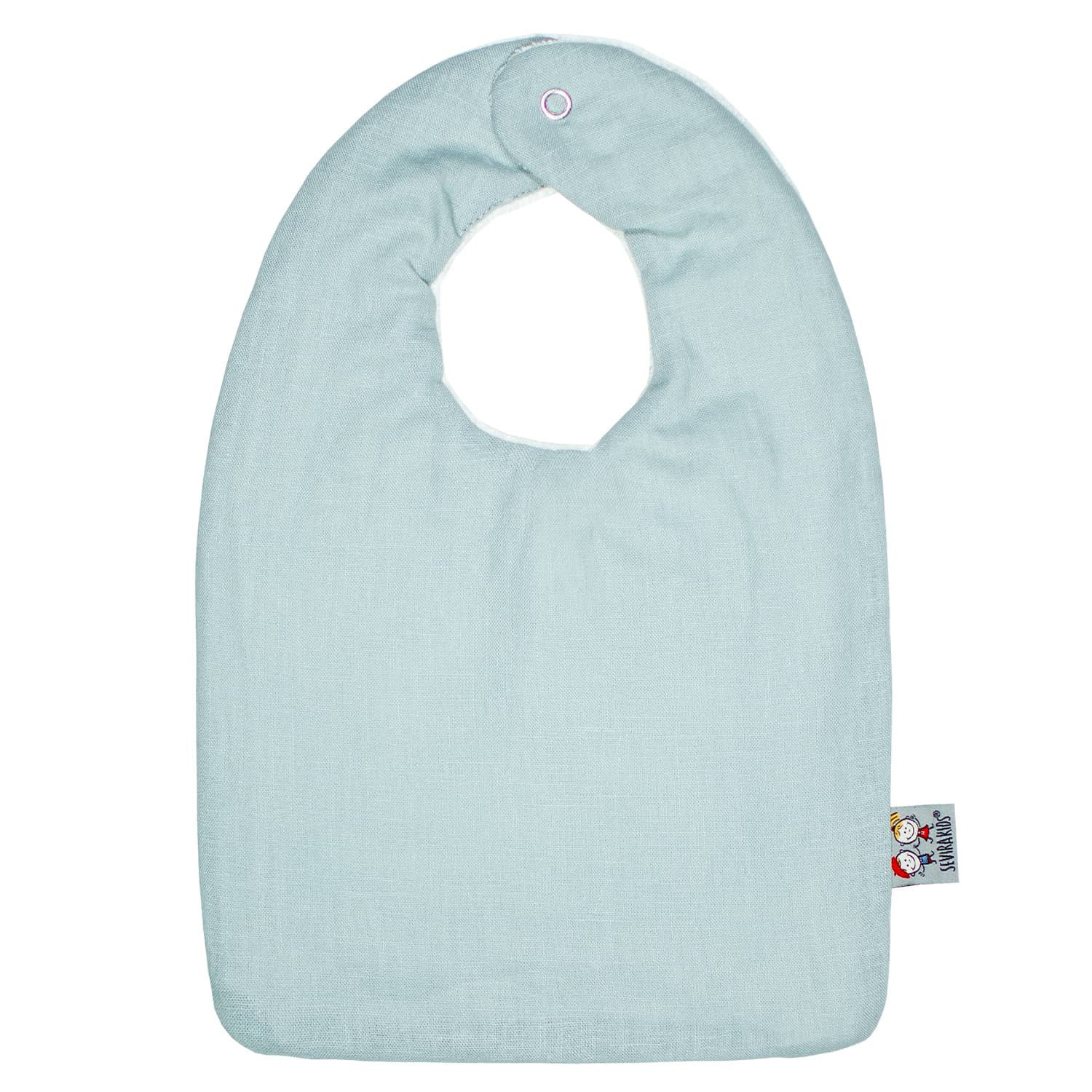 Bavoir bébé en lin vert de gris dès la