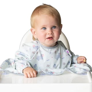 Très facile à nettoyer, le Bavoir Manches longues nomade Taille unique Hippos de Tidy Tot passe à la machine à 40°.