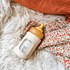 Ce biberon offre l'avantage d'être protégé en cas de chute grâce à la housse qui lui sert de protection.