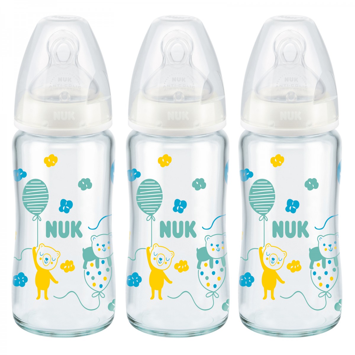 Lot 3 biberons verre 240ml 0-6m ours