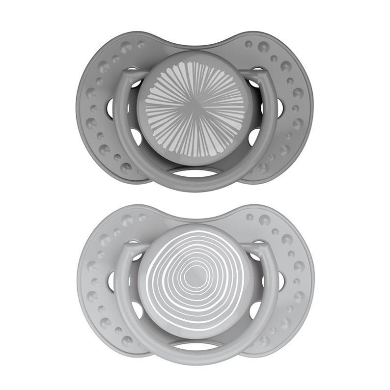 - Gris : Comprend une sucette gris clair et une gris foncé