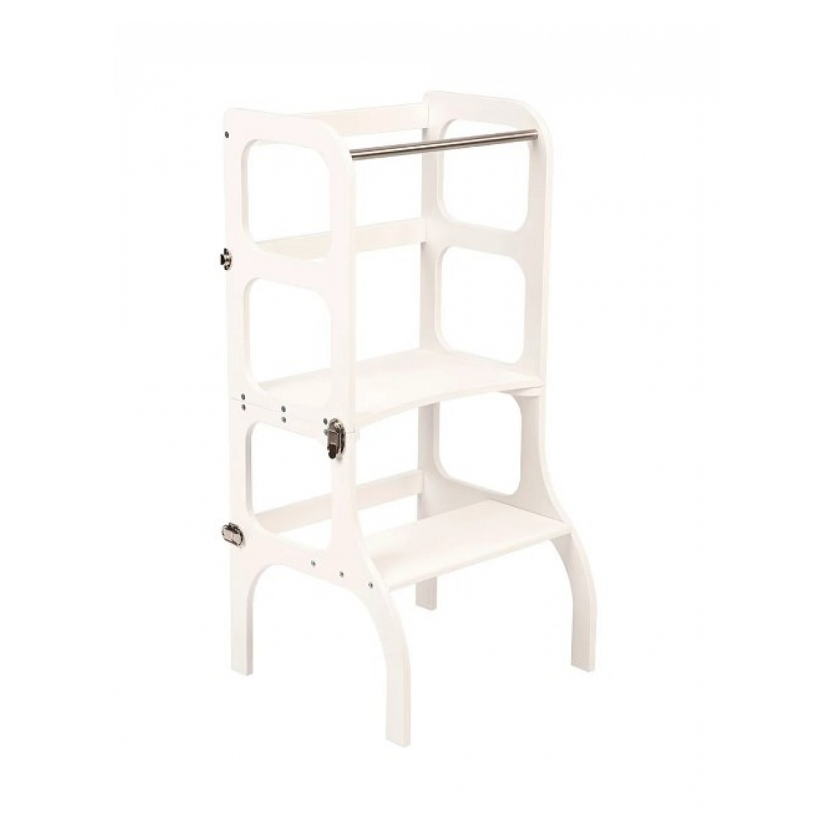 Step'n'Sit va changer les activités quotidiennes de votre enfant. Cette tour d'apprentisssage est basée sur le principe de base de la pédagogie Montessori pour développer l'autonomie et l'implication de l'enfant dans les tâches quotidiennes. Il permet d'économiser de l'espace, car il est convertible et combine deux meubles pour enfants nécessaires en un seul - une table et un escabeau. Le marchepied offre à l'enfant la possibilité de vous aider au comptoir de la cuisine, tandis que la table est la plate-forme idéale pour créer de magnifiques dessins, jouer avec des jouets ou manger. Faites-leur découvrir un nouveau monde ! Conçu pour répondre aux besoins spécifiques des jeunes enfants âgés de 18 mois et plus.