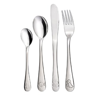 Couteau et fourchette pour enfants, cuillère pour enfants et petite cuillère – l’ensemble est complet. Le manche des couverts junior, spécialement conçu pour les mains des enfants, s'adapte confortablement à toutes les mains grâce à sa résistance. Apprendre à manger devient alors un jeu d’enfant. Les couverts pour bébé sont non seulement fonctionnels mais aussi extrêmement joliment conçus.