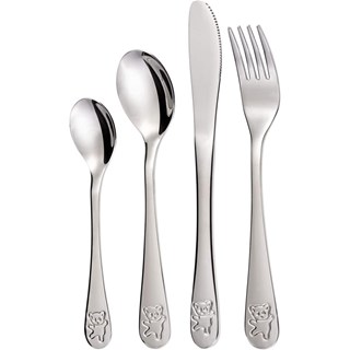 Les motifs d'ours en peluche en relief sur les extrémités des manches des couverts junior confèrent à l'ensemble de couverts pour enfants un aspect ludique et attrayant. Les enfants adoreront les jolis motifs et apprécieront de manger avec la cuillère et la fourchette pour enfants. Les couverts pour bébé font de chaque repas une expérience divertissante et constituent un cadeau idéal pour une naissance ou un baptême. L'emballage pratique permet de transporter facilement l'ensemble et de l'offrir en cadeau.