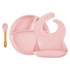 - Un set composé de trois produits : une assiette, une cuillère et un bavoir