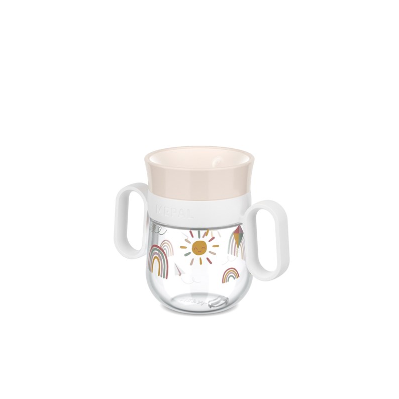 Le gobelet Mepal Mio 360° de 200 ml avec l'impression Sunshine & Rainbow est parfait pour les petits aventuriers qui apprennent à boire seuls. Grâce à son design innovant, il est possible de boire sous tous les angles, et la valve étanche empêche les fuites. Le gobelet est fabriqué dans un matériau durable, facile à nettoyer et résistant au lave-vaisselle. Le motif coloré Sunshine & Rainbow ajoute de la gaieté à chaque moment.