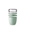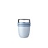 Le pot à déjeuner mini en Nordic blue est idéal pour emporter par exemple du yaourt avec du müesli, ou de la soupe avec des croûtons. Deux compartiments astucieux, un seul pot robuste. Grâce aux deux compartiments bien séparés, les différents ingrédients ne se mélangent pas. La taille de ce petit pot à collation en fait également un pot idéal pour votre enfant, qui peut l'emporter facilement à l'école ! Le compartiment haut a une capacité de 120 ml, il peut contenir environ 50 grammes de müesli ou de morceaux de fruits. La capacité du compartiment du bas est de 300 ml.