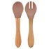 - Un set composé d'une fourchette et d'une cuillère avec un embout en silicone et le manche en bois naturel.