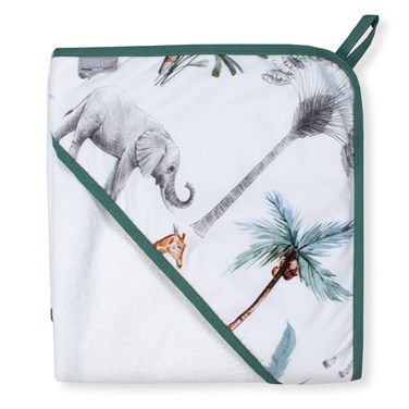 Le design délicat de la cape de bain Safari vous fera craquer avec ses jolis imprimés à l'esprit jungle, sublimés par un liseré vert.Texture bambou : Excellence en Absorption