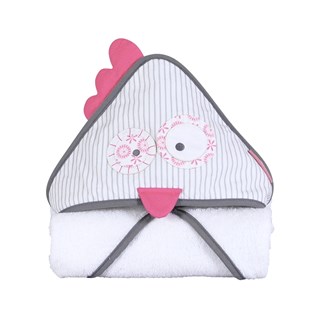 Motifs tête de hibou appliqués et brodés sur le dessus de la capuche.