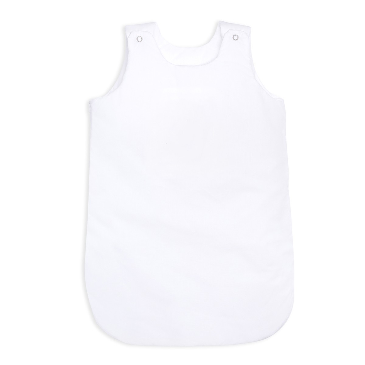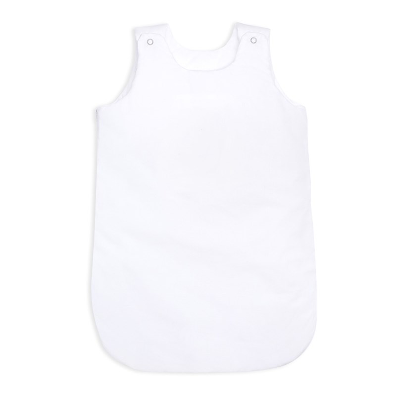 Cette gigoteuse blanche toute douce s'ouvre par 2 boutons pression aux épaules et par une grande fermeture éclair sur le côté.