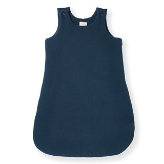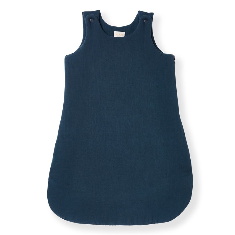 Cette gigoteuse hiver ou mi-saison est en très belle double gaze de coton biologique bleu fonçé, d'une douceur infinie.