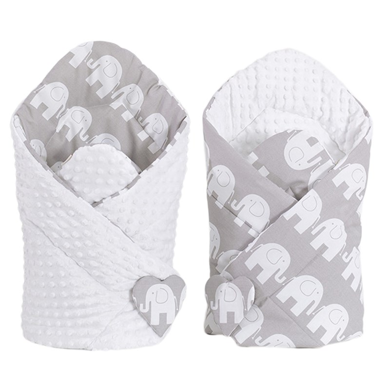 Pratique et esthétique , la gigoteuse d'emmaillotage - nid d'ange en Minky Réversible Éléphants est idéale pour faire dormir bébé quelle que soit la saison !