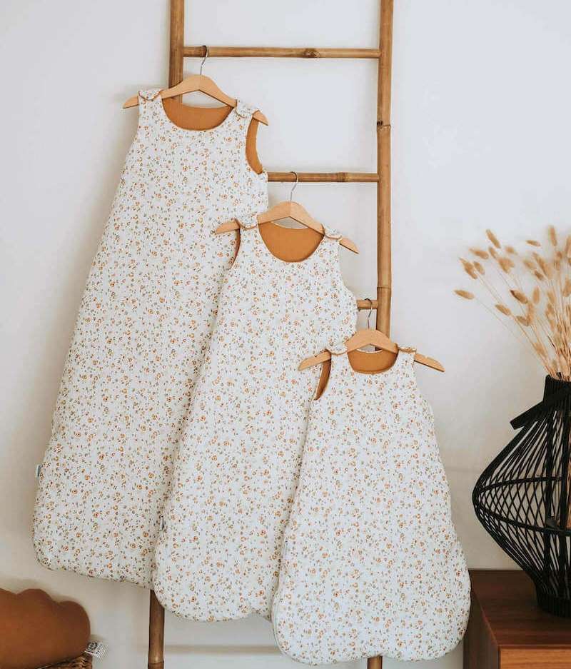 Cette gigoteuse nomade qui peut vous suivre partout est disponible en trois tailles pour être utilisée dès la naissance jusqu'aux deux ans de votre enfant :