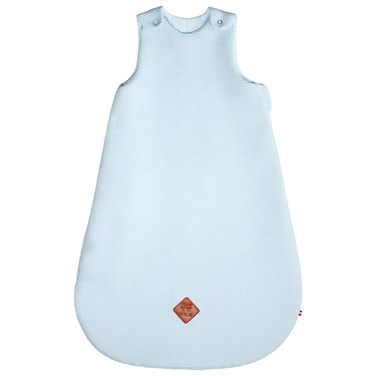 Gigoteuse en 100% coton nid d'abeille et lange, légère, douce et souple. Pratique : ouverture zippée sur toute la longueur et fermeture par boutons pression sur les bretelles. Sécurité : larges bretelles qui restent en place sur les épaules de bébé, même lors de nuits agitées. Liberté de mouvement : fond large pour une liberté de mouvement optimale.