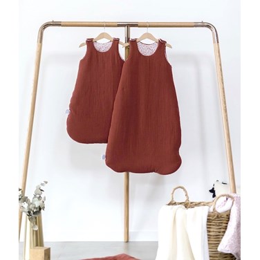 Extérieur en double gaze tomette et intérieur en coton à motifs fleuris certifiés OEKO TEX et ouate hypoallergénique.
