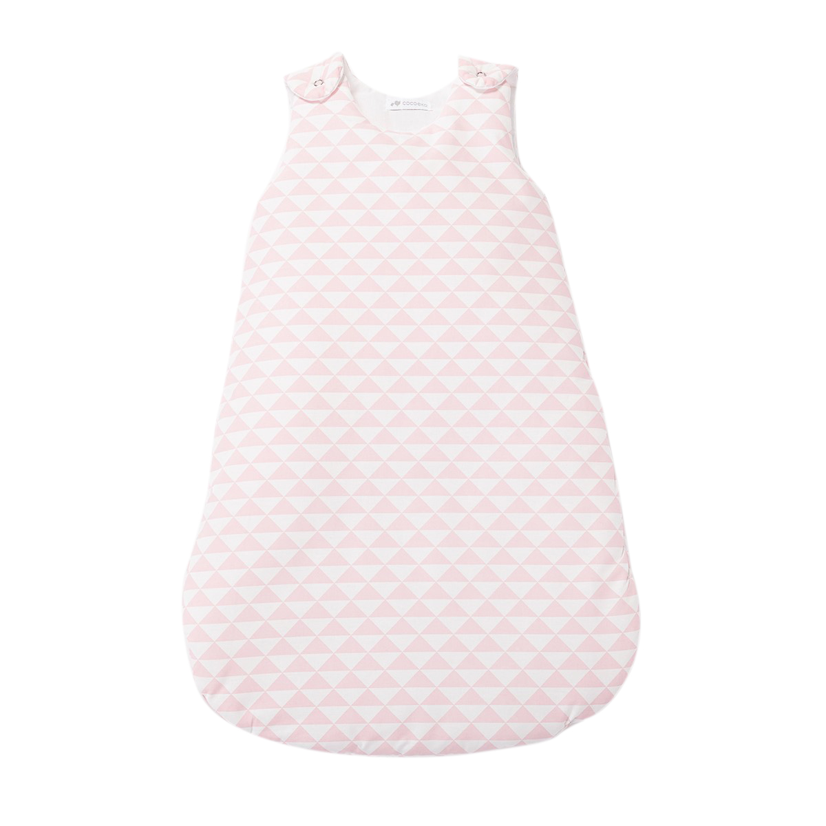 Gigoteuse au motif d'origine Scandinave Triangle Rose layette sur fond blanc. Tissu intérieur uni blanc. Tour de lit coordonné disponible.