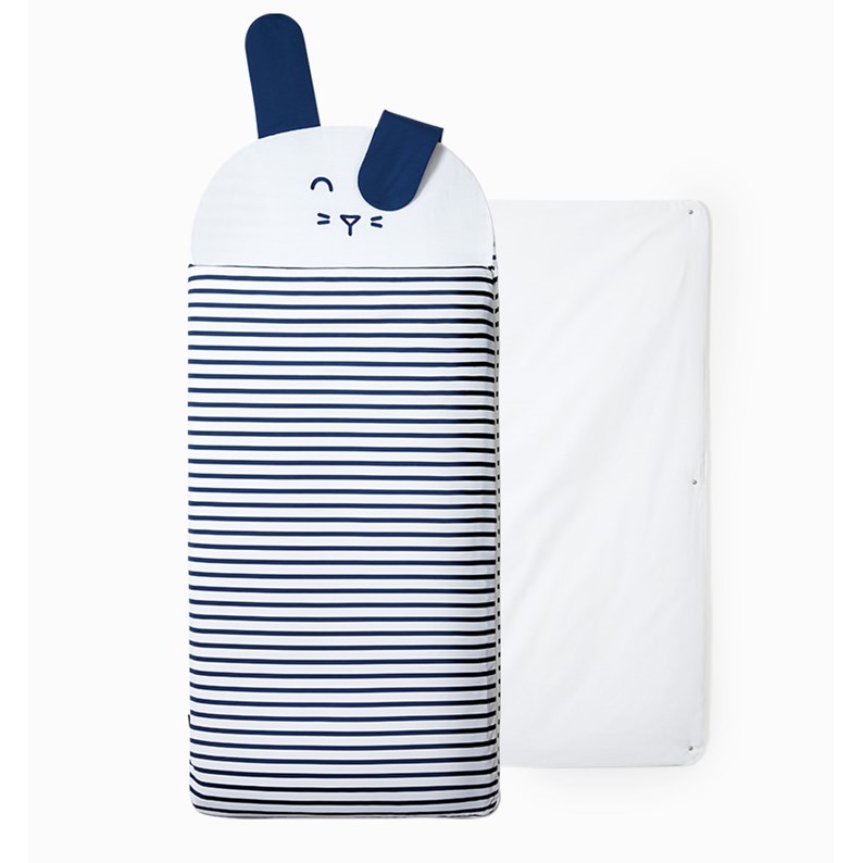 Il est aussi adapté pour assurer les siestes à la maternelle. Il se transporte dans son pochon et votre enfant peut l’utiliser toute l’année (l’hiver avec sa doublure amovible et l’été sans sa doublure). Il sera autonome et peut se glisser dedans facilement.
