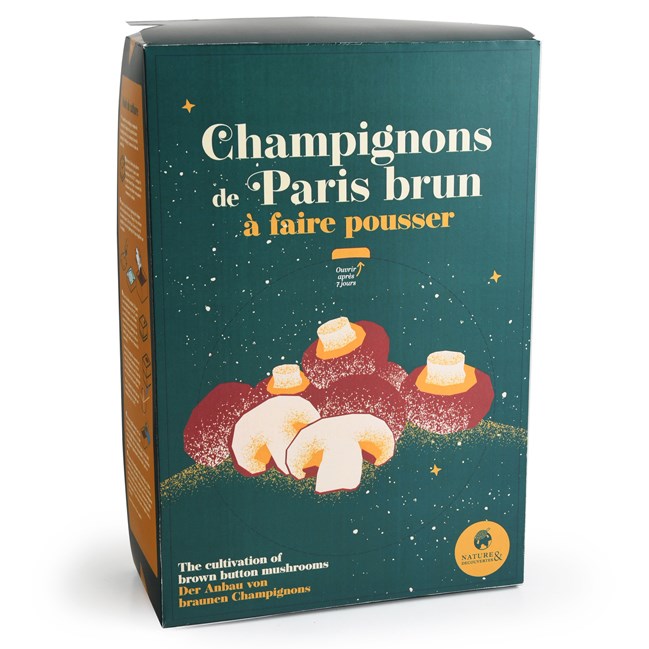 - A l'intérieur, découvrez tout le nécessaire ainsi que des graines de champignons de Paris bruns d'origine biologique.