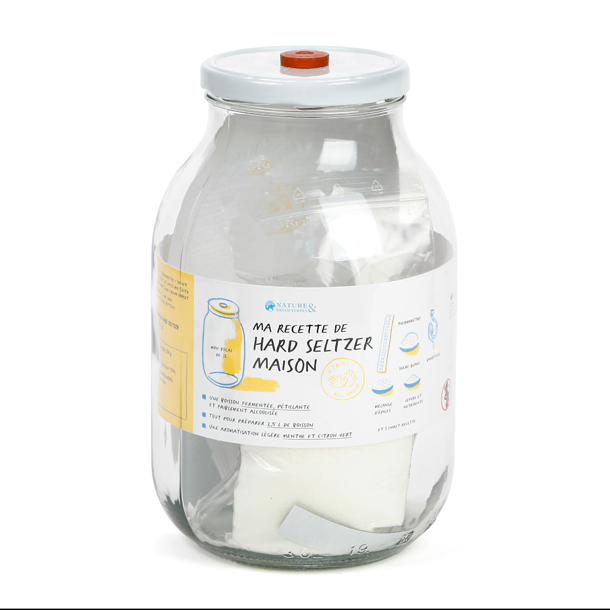 - Contient : 1 barboteur, 1 thermomètre, 1 sachet de levure et nutriments, du sucre blanc*, 1 mélange d’épices (avec des zestes de citron vert* déshydratés, de la menthe douce* et menthe poivrée*) et 1 livret recette.