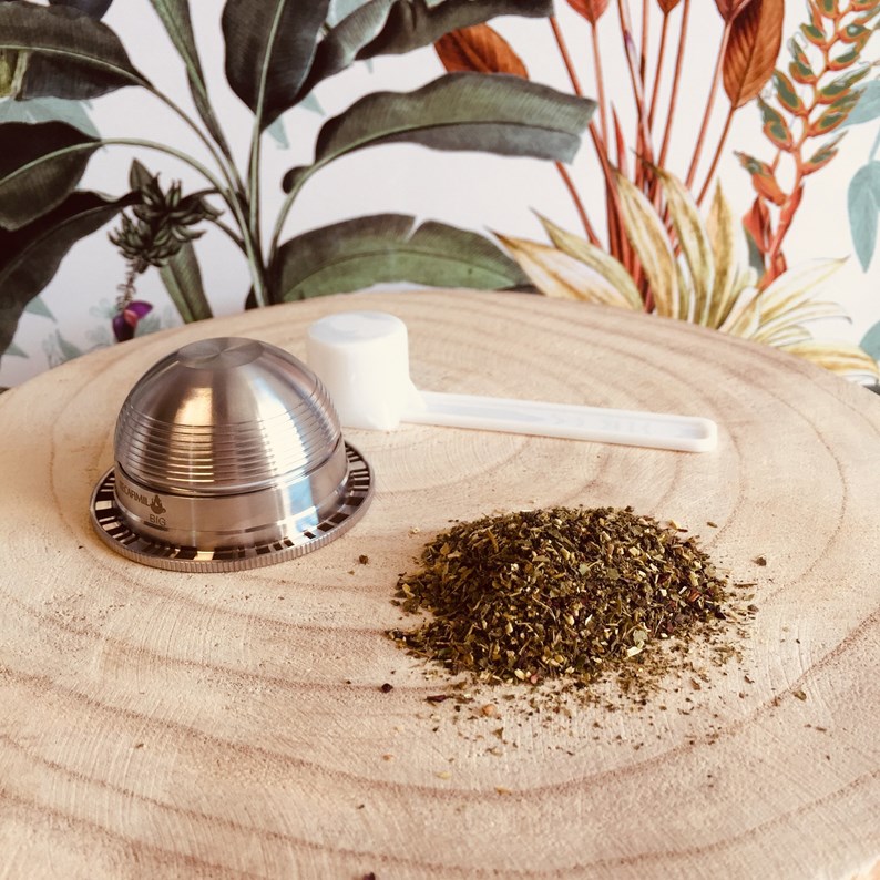 Les thés en vrac bio de Capsul&bio vous permettent d'utiliser vos capsules Nespresso® Vertuo® rechargeables pour obtenir un thé de qualité en 30s avec votre machine à café !