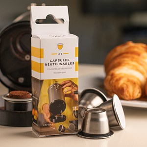 - Ces 3 capsules réutilisables sont fabriquées en acier inoxydable. Elles sont munies d'un joint en silicone.